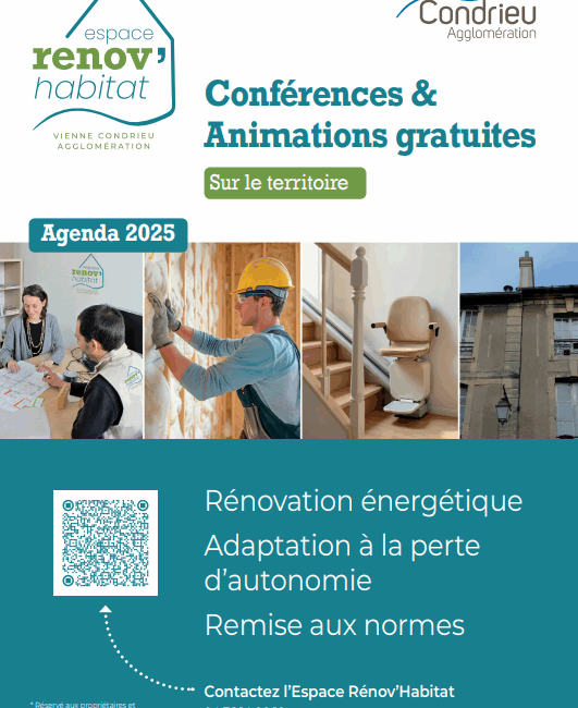 Tous ces évènements sont désormais regroupés dans un dépliant programme disponible aux accueils de mairies et de l’Agglo et sur le site web de l’Agglo : https://www.vienne-condrieu-agglomeration.fr/actualites/actualite/l-espace-renovhabitat-vous-invite